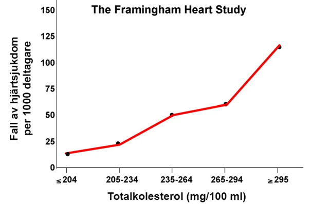 Sambandet mellan totala kolesterolnivåer och hjärtsjukdom i Framinghamstudien