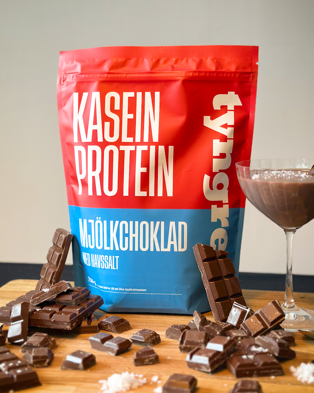 - Kasein (casein) – ett långsammare mjölkprotein som ger tjockare konsistens