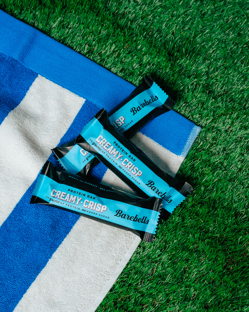 Barebells har skapat den krämigaste proteinbaren någonsin – Barebells Creamy Crisp med ett knaprigt fodral av ljus choklad och en insida med vit, fluffig proteinmassa, toppad med karamellsås och krispiga puffar.