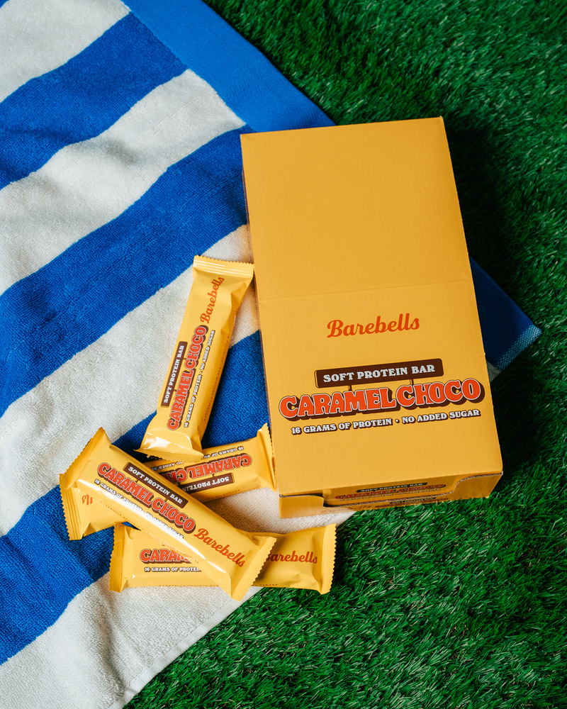 Barebells Caramel Choco, en stående favorit i Barebells soft bar-sortiment. Proteinbaren innehåller den perfekta balansen mellan sammetslen mjölkchoklad och en mjuk karamell-fudge, berikad med 16 gram protein och helt utan tillsatt socker.
