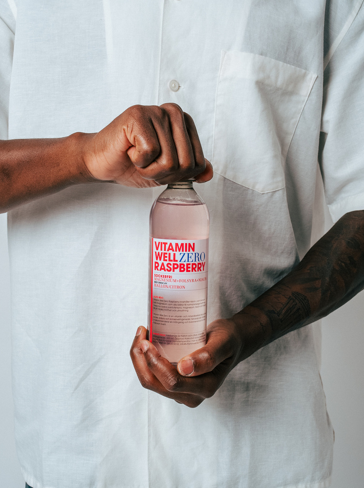 Vitamin- och mineralberikad sockerfri dryck utan kolsyra. Med smak av hallon och citron. Innehåller sötningsmedel. Vitamin Well Zero Raspberry innehåller niacin, pantotensyra och magnesium, som alla bidrar till normal energiomsättning. Dessutom bidrar pantotensyra, magnesium, niacin och folsyra till att minska trötthet och utmattning. Öppnad flaska bör konsumeras under dagen. Kan förvaras i rumstemperatur, men ej i direkt solljus.