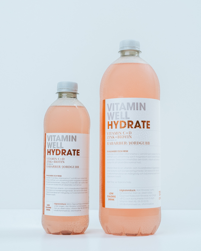 Perfekt när du behöver ladda om med smak av jordgubb och rabarber. Vitamin Well Hydrate är en lågkaloridryck utan kolsyra berikad med vitaminer och mineraler.